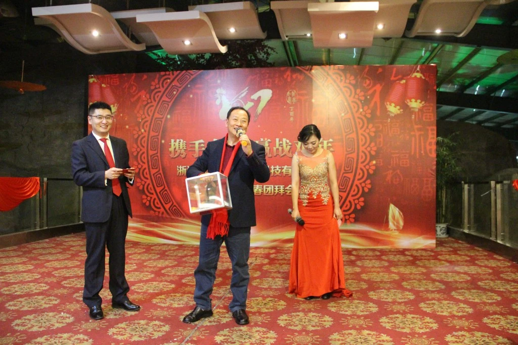 团拜会现场欢歌笑语,员工献上了精心准备的节目表演,一轮轮激动人心的抽奖活动,伴随着诙谐有趣的游戏互动,明泉公司董事长黄立明的精彩致辞,把祝福和鼓舞传递给了每一位家人。