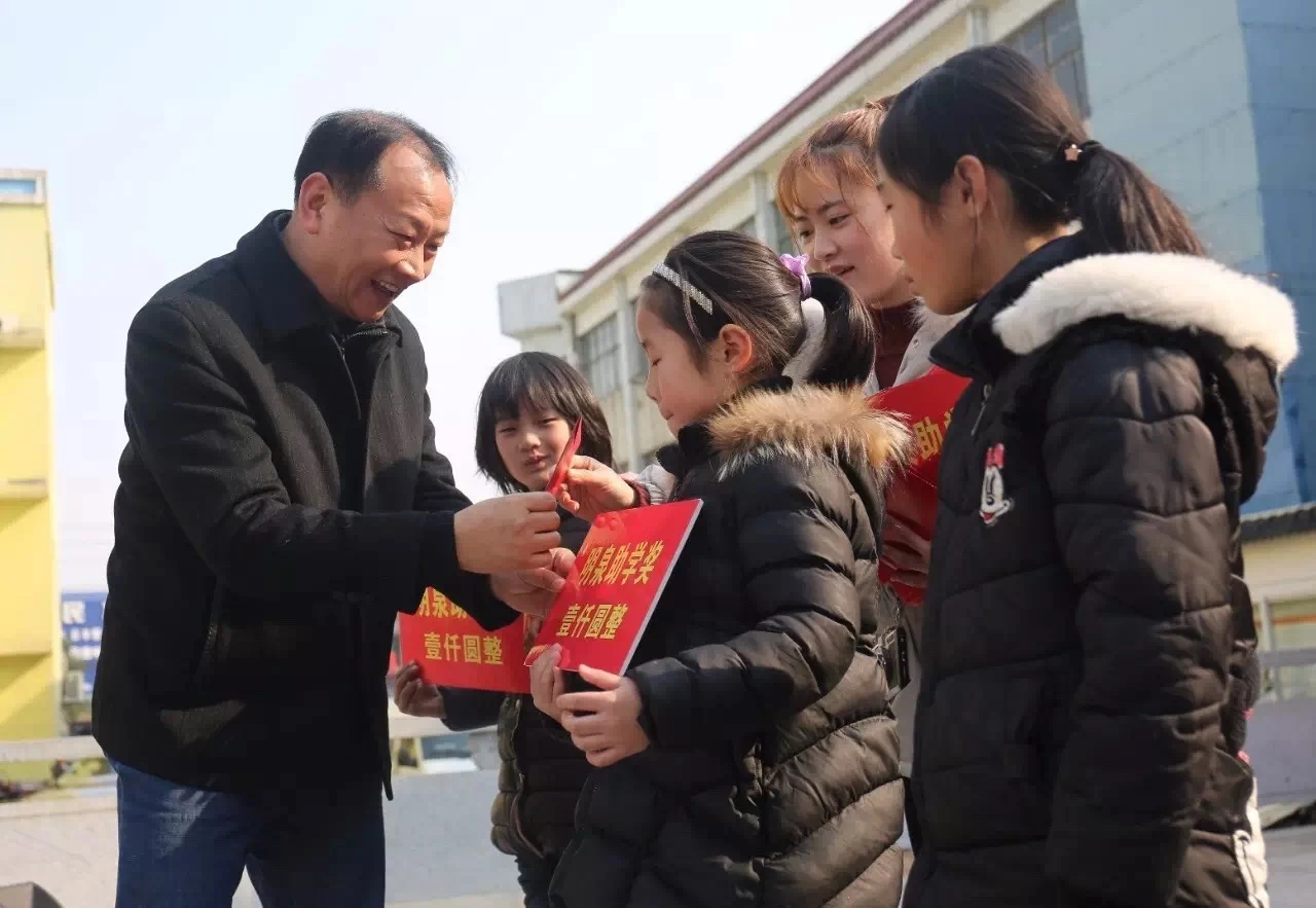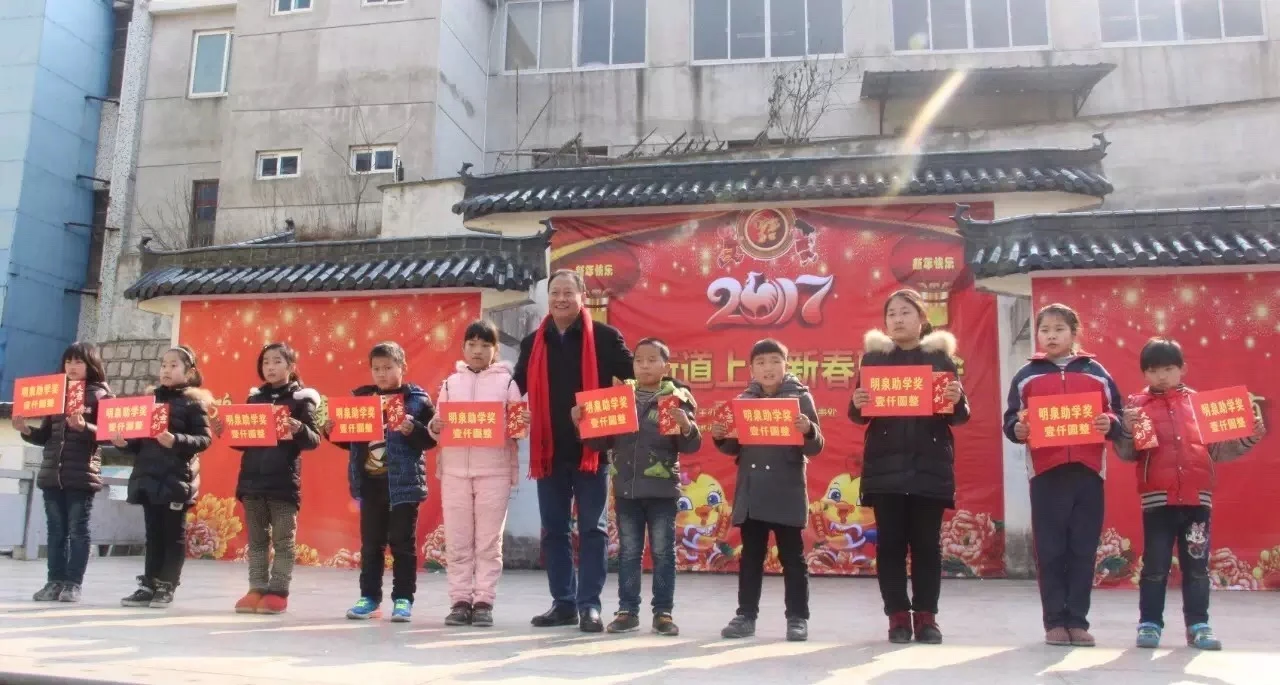 2017年1月22日在舞阳街道“上柏新村联欢会”上 为20名贫困儿童颁发明泉助学奖