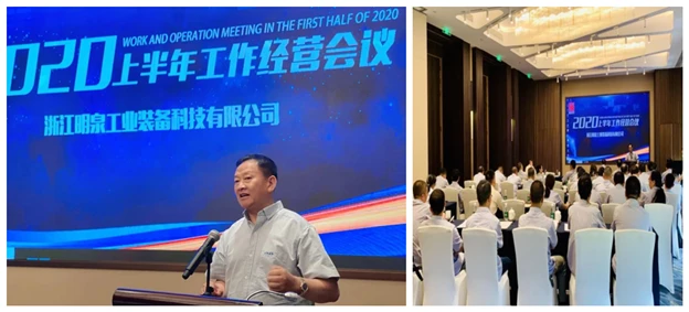 2020年明泉半年度经营管理工作会议在郡安里会议中心召开。会上黄立明董事长总结上半年由于疫情影响原材料供应和配套厂家不能正常开工供货,对按时交货造成一定影响,设备的制造周期延长、调试压力较大;提出下半年建立企业之间的战略伙伴关系,创导合作共赢理念,强化合作新业态、引进新技术、招纳专业人才,使企业能得到稳健发展。