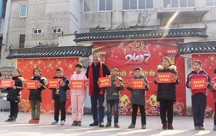2017年1月22日在舞阳街道“上柏新村联欢会”上 为20名贫困儿童颁发明泉助学奖