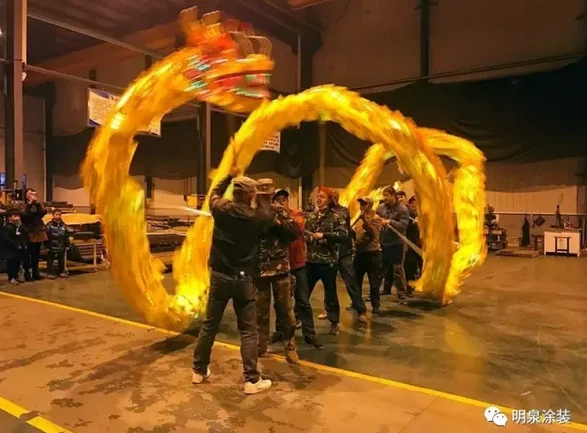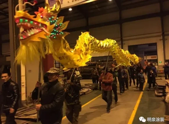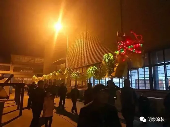 浙江明泉工业装备科技股份有限公司所在的上柏就有正月十六舞龙灯的习俗,龙腾盛世舞出一年好运道,正所谓十五的月亮十六圆。正月十六晚,明泉公司厂区内火树银花,人潮涌动,金龙献瑞遍及每一个车间以及行政办公大楼,龙灯舞到哪,哪里就欢声笑语、鞭炮齐鸣,展现了明泉人龙马精神向未来和周边居民群众对美好生活的期望,大家其乐融融共同度过了一个喜庆祥和的夜晚……