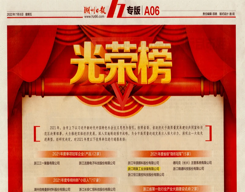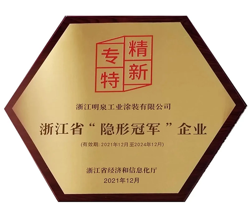 本次浙江明泉工业涂装有限公司荣获浙江省“隐形冠军”企业的称号,更是对公司“专业化、精细化、特