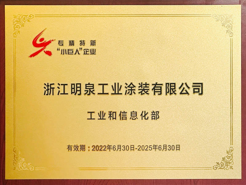 9月6日,国家工信部公布第四批专精特新“小巨人〞企业名单,浙江明泉工业涂装有限公司荣列其中。