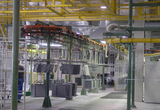 明泉为家电行业:海尔、海信、奥克斯、日立等家电厂商和电气开关行业:许继电气、平高电气、华仪电气、正泰电气、欧普照明、华普永明等制造的智能全自动涂装生产线,机器人喷涂;设计线速最大4-12米,采用多驱动智能控制系统。整条生产线可采用远程控制,对主要设备及控制单元的运行实施远程控制。