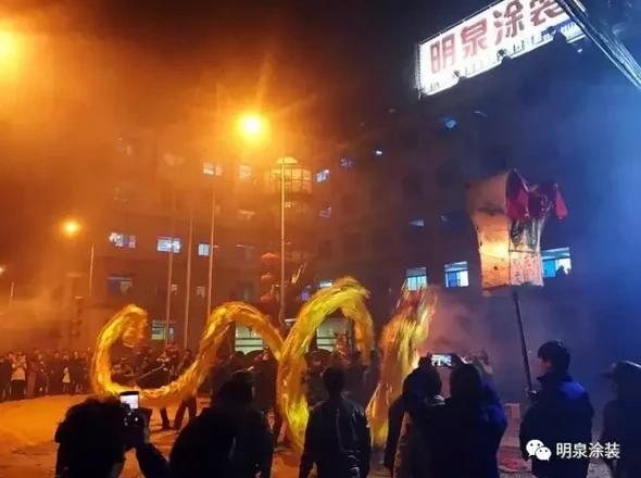 浙江明泉工业装备科技股份有限公司所在的上柏就有正月十六舞龙灯的习俗,龙腾盛世舞出一年好运道,正所谓十五的月亮十六圆。正月十六晚,明泉公司厂区内火树银花,人潮涌动,金龙献瑞遍及每一个车间以及行政办公大楼,龙灯舞到哪,哪里就欢声笑语、鞭炮齐鸣,展现了明泉人龙马精神向未来和周边居民群众对美好生活的期望,大家其乐融融共同度过了一个喜庆祥和的夜晚……