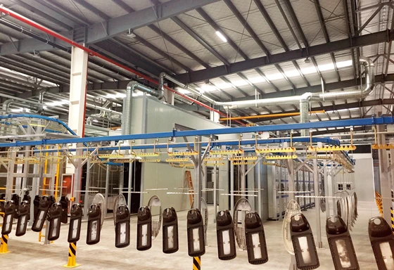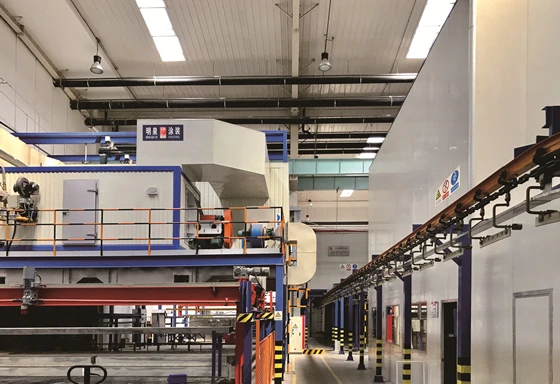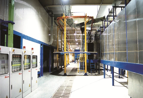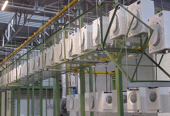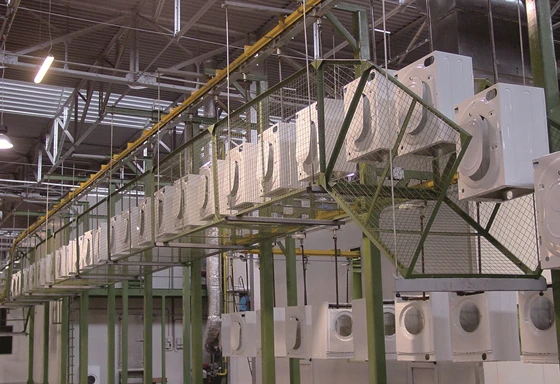 明泉为家电行业:海尔、海信、奥克斯、日立等家电厂商和电气开关行业:许继电气、平高电气、华仪电气、正泰电气、欧普照明、华普永明等制造的智能全自动涂装生产线,机器人喷涂;设计线速最大4-12米,采用多驱动智能控制系统。整条生产线可采用远程控制,对主要设备及控制单元的运行实施远程控制。